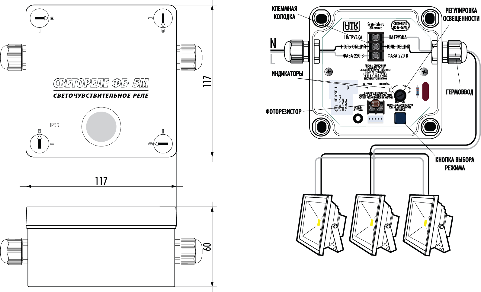 Светочувствительное реле выпускается в герметичном корпусе с присоединением проводов питания и коммутируемых электрических цепей через гермовводы.
