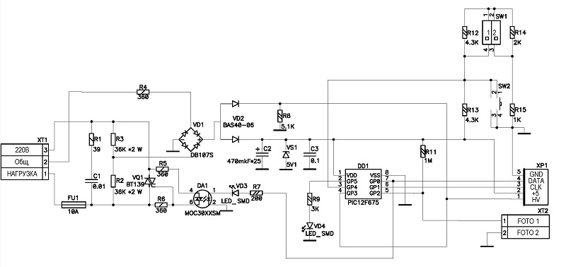 ― Плавное автоматическое (без настройки порога срабатывания) включение ламп накаливания (ФБ-1). Данный режим позволяет продлить срок службы ламп накаливания за счет исключения их ― холодного старта с большим потребляемым током. Переменный резистор 1 мОм вместо сенсора выполняет функцию регулятора света.