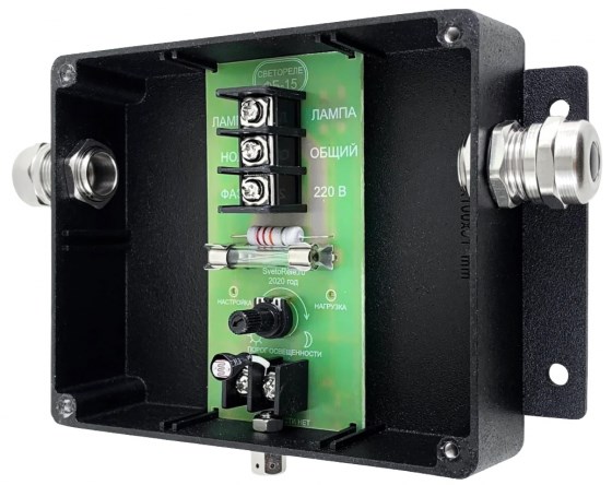 Светочувствительное реле выпускается в герметичном аллюминевом корпусе с присоединением проводов питания и коммутируемых электрических цепей через гермовводы.