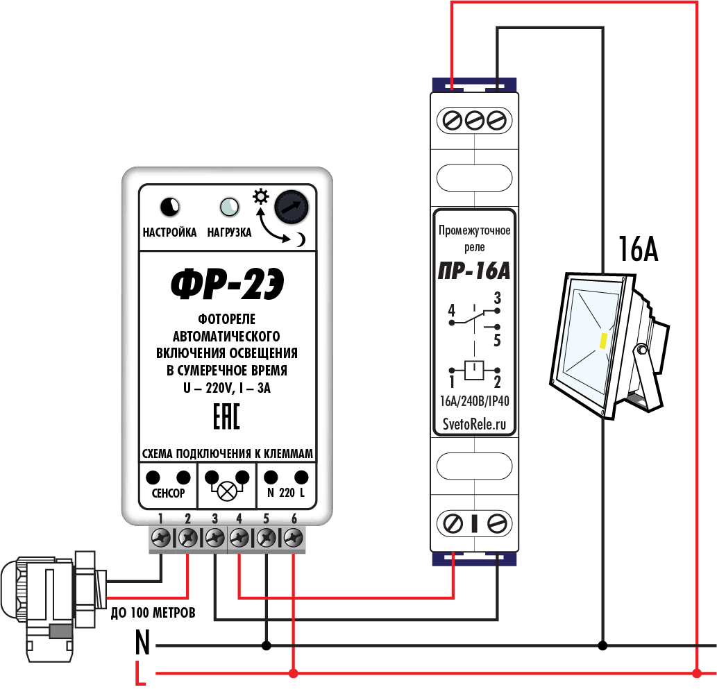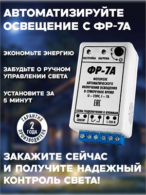 Схема включения фотореле ФР-7АУстановка датчика освещенности