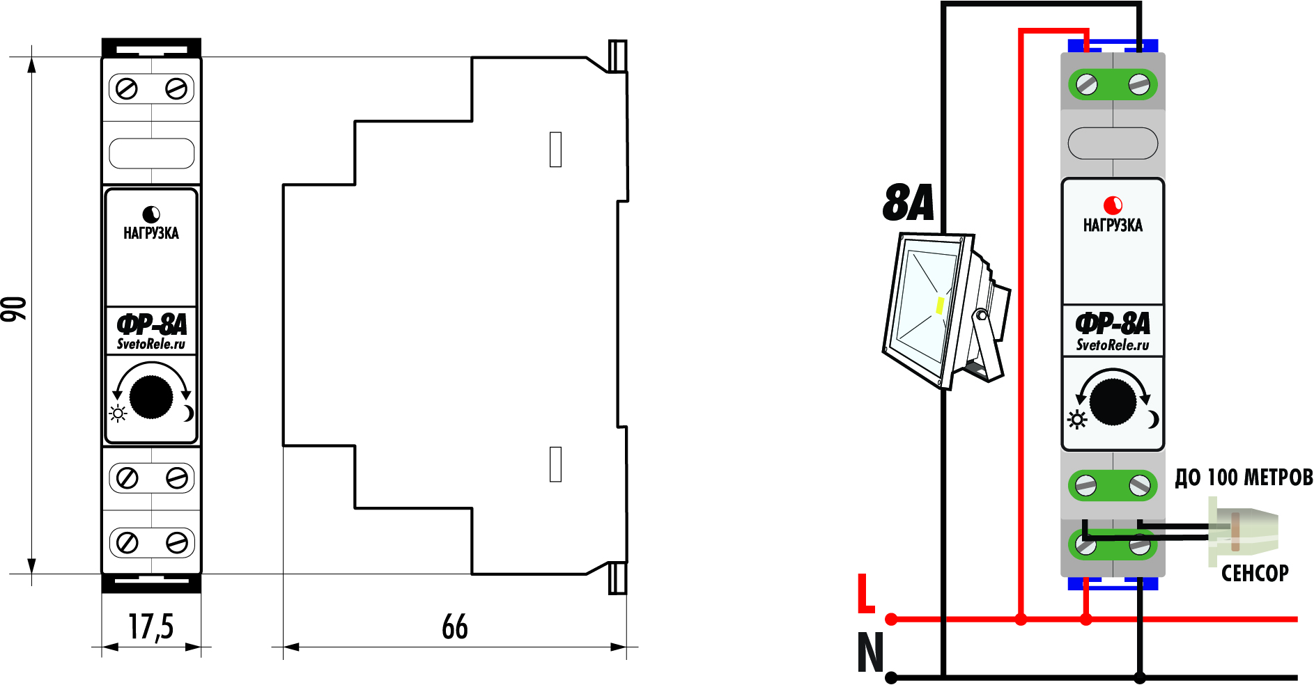Подключение фотореле ФР-8Асветочувствительные элемент