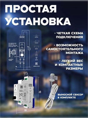 Фотореле аналоговое ФР-16А (контактное 16А/IP40) Гермосенсор 2 метра, на дин-рейку
