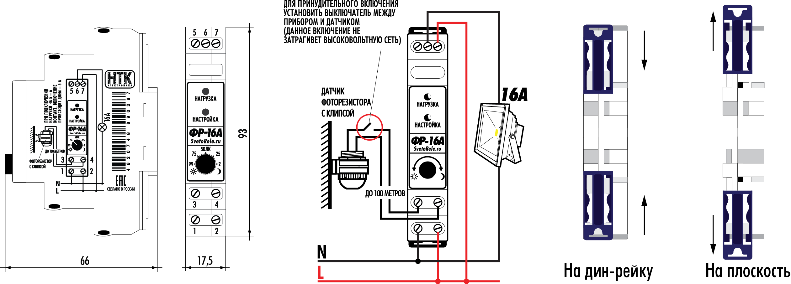 4. Реле устанавливается на din ― рейку или на плоскость.