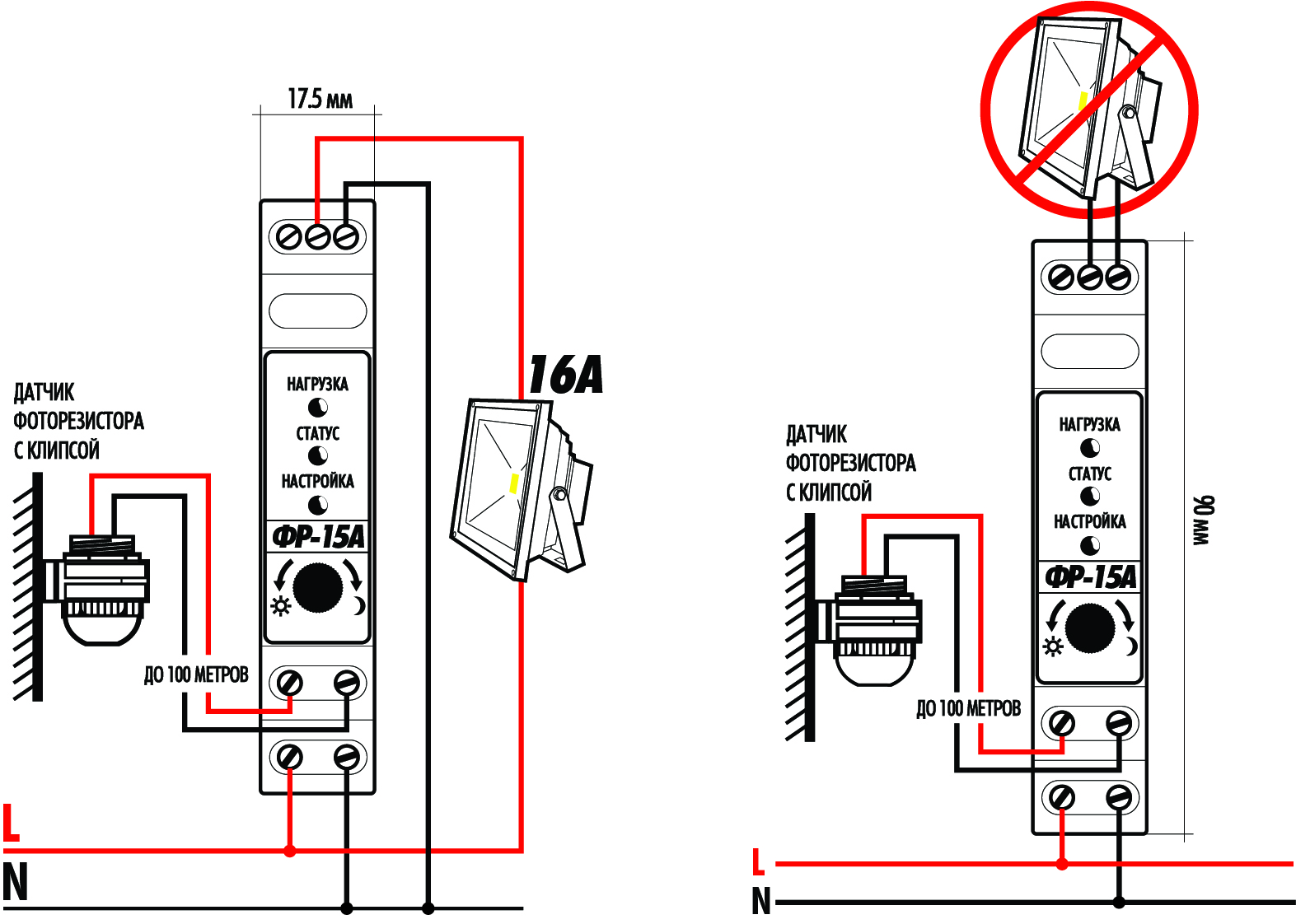 Фотореле выпускается в пластиковом корпусе с присоединением проводов питания, коммутируемых электрических цепей и гермосенсора на клеммы прибора.