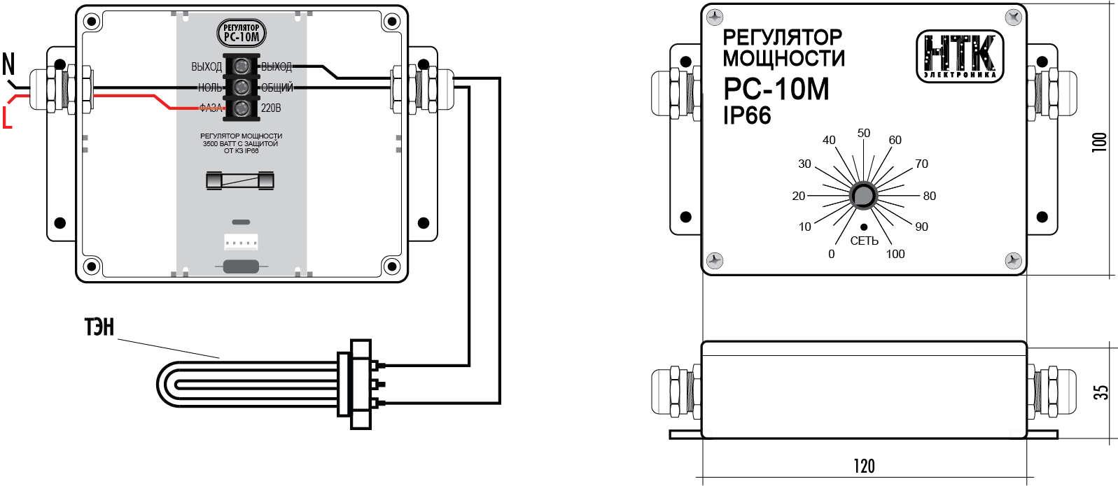 Регулятор мощности РС-10М (аналоговый диммер 10А/IP66)