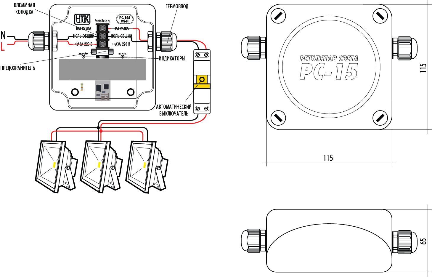 Светорегулятор РС-15А Wi-Fi (цифровой диммер 15А/IP56)