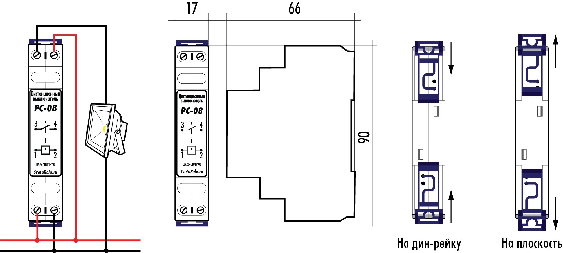 6. Габаритные размеры ― 17.5 х 66 х 90 мм.
