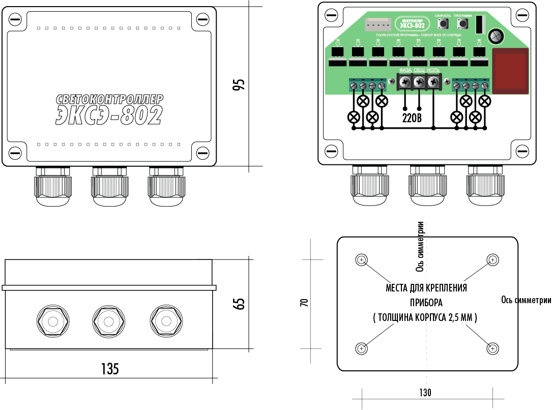 Контроллер выпускается в герметичном корпусе с присоединением проводов питания и коммутируемых электрических цепей через гермовводы.