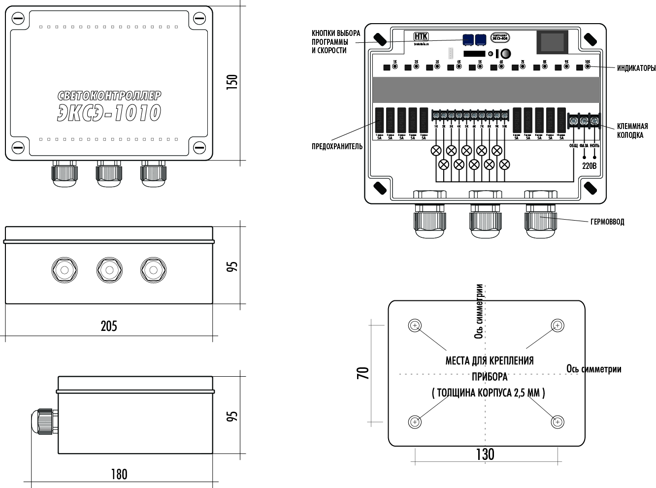 Контроллер выпускается в герметичном корпусе с присоединением проводов питания и коммутируемых электрических цепей через гермовводы.