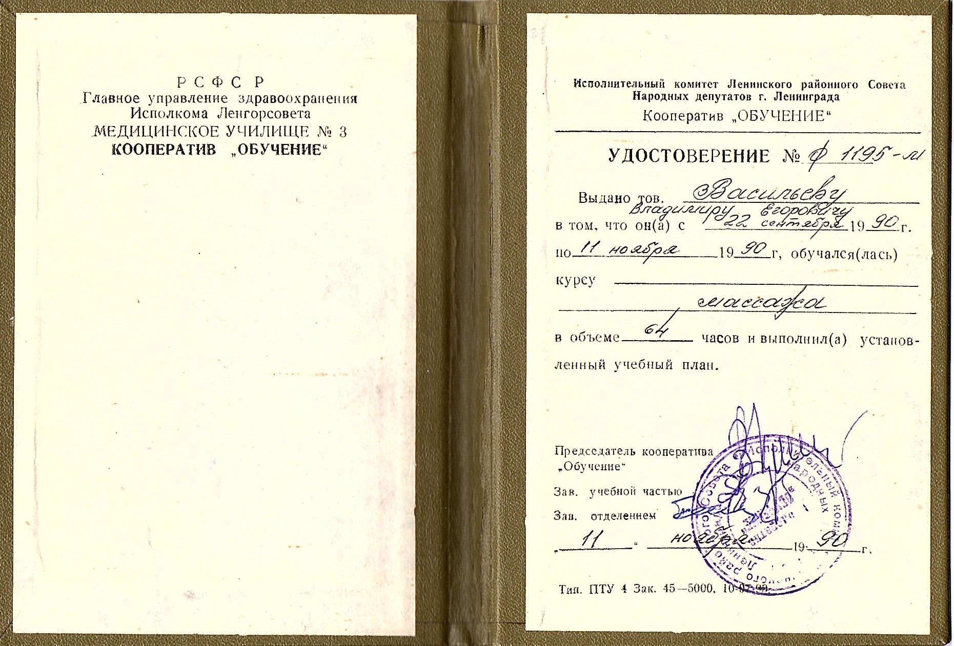 Медицинское училище № 3, кооператив «Обучение», массаж 1990
